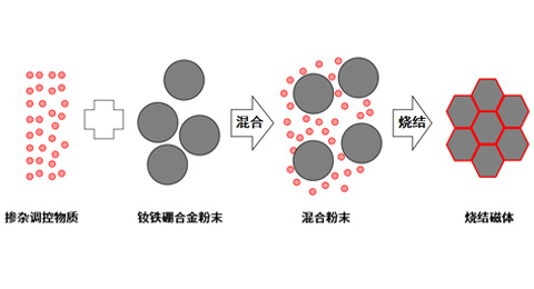 晶界摻雜調(diào)控技術(shù)是公司開(kāi)發(fā)出超高磁性能系列、高熱穩(wěn)定性系列、低重稀土系列燒結(jié)釹鐵硼磁體的關(guān)鍵核心技術(shù),也是廢舊磁體回收再生過(guò)程的核心技術(shù)。